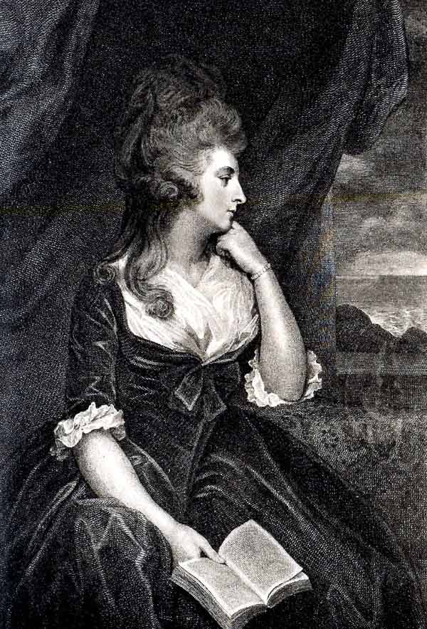 "For she was fair beyond your brightest bloom (This Envy owns, since now her bloom is fled): Fair as the Forms that wove in Fancy's loom, Float in light vision round the Poet's head. Whene'er with soft serenity she smiled, Or caught the orient blush of quick surprise, How sweetly mutable, how brightly wild. The liquid lustre darted from her eyes! Each look, each motion, waked a new-born grace That o'er her form its transient glory cast: Some lovelier wonder soon usurped the place, Chased by a charm still lovelier than the last."