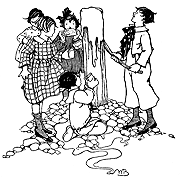 At that Amos and Ann laughed so hard that they had to sit down on the ground. But all at once a clock began to strike fast and furiously. It had struck a hundred before the children could scramble to their feet.