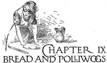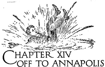 But she did not read long. The charm of the green world around her was greater than the pictured world of the book. Chicken Little fell to making pictures of her own–dream pictures that changed quickly into other dream pictures, as real dreams sometimes do. As she stared down the leafy arcades between the rows of apple trees, she saw an immense ball room hung in red, white, and blue bunting and filled with astonishingly handsome young men in blue uniforms. Ernest was there. And a tall, curly-headed Adonis, who looked both like, and unlike, the good-natured, plump Carol of Old Centerville days, was close beside her. But when the supposed Carol spoke, it was certainly Sherm’s voice she heard, and it was Sherm’s odd, crooked smile that curved the dream midshipman’s lips. Chicken Little recognized the absurdity of this herself and laughed happily. A bird on a bough nearby took this for a challenge, and burst into an ecstasy of trills.