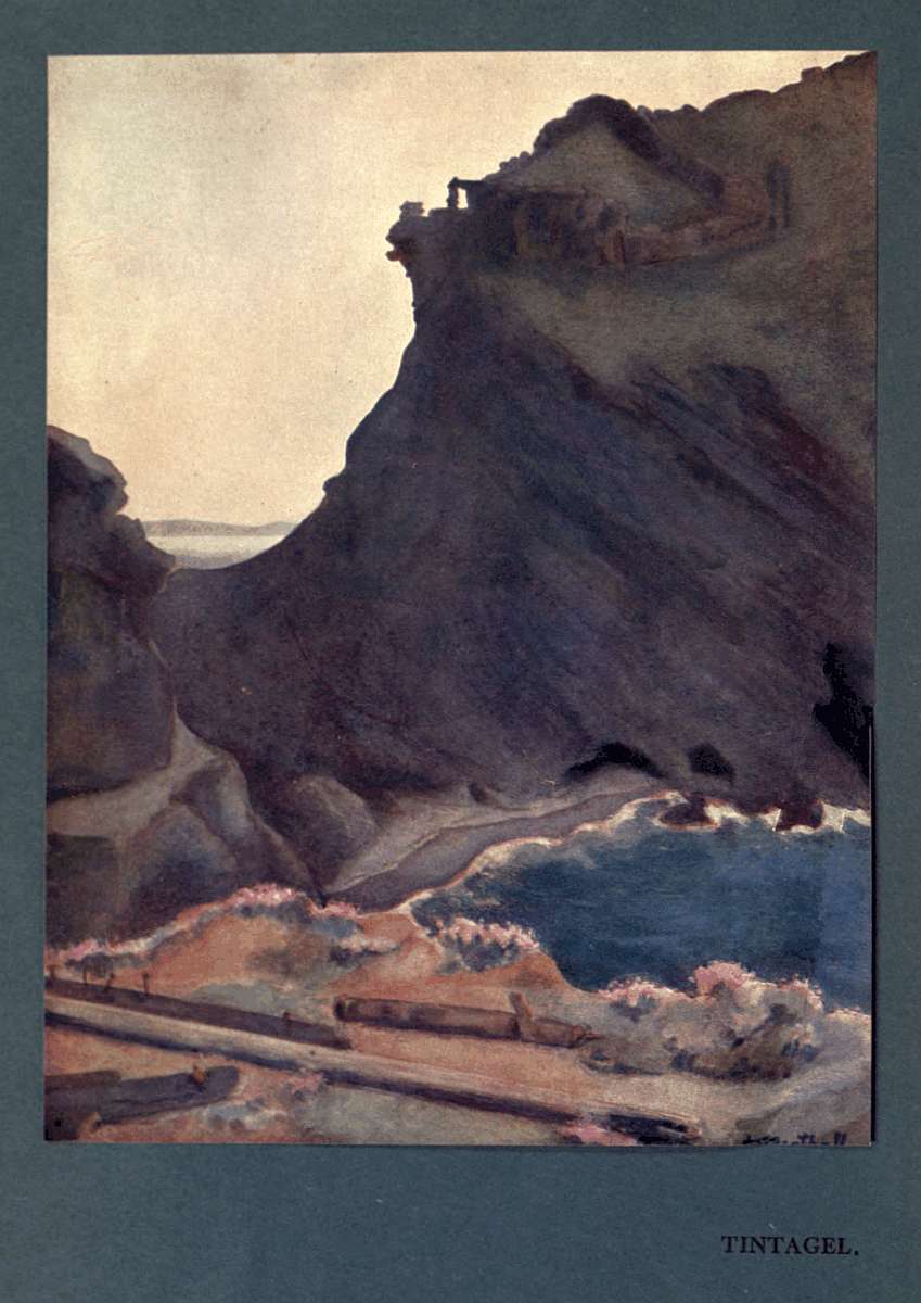 As for the existing ruin, it springs from that of the castle which saw the meeting of Arthur's parents, Uther Pendragon and the fair Igraine; but the original British building has long[109] since vanished, and the present remains, dating from the Norman Conquest, did not rise until six hundred years later than the hero's death. An old Cornish tradition declares that Arthur's mighty spirit passed into a Cornish chough, and in the guise of that beautiful crow with the scarlet beak, still haunts the ruins of his birthplace.