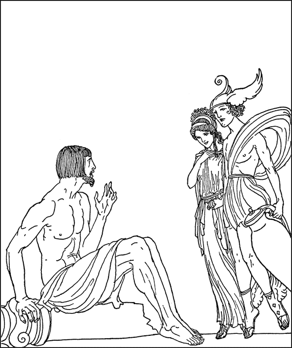 Hardly could Admetus bear to do this—hardly could he bear to think of a strange woman being in his house and his own wife gone with Death. But Heracles pleaded with him, and by the hand he held he drew the woman across his threshold.