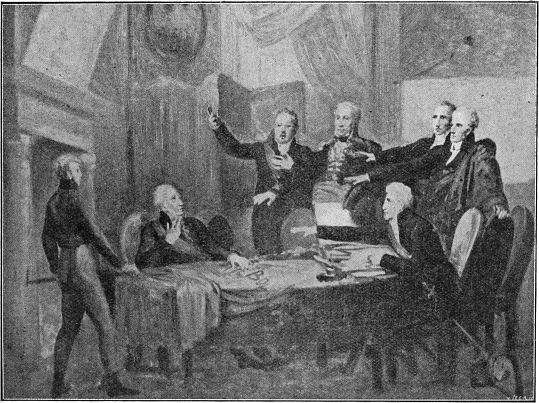 Ofschoon Josephine in vroegere tijden, toen zij Napoleon, den krijgsman zonder vermogen en vooruitzichten, huwde, de voornaamste aanleiding gegeven had tot de rol, die hij later speelde, en ofschoon hij waarlijk van haar hield,—liefde en dankbaarheid zwegen beide in de ziel van den dwingeland, voor heerschzucht, voor Staatsbelang en voor wat hij zijn plicht jegens Frankrijk noemde—hij dreef de scheiding van Josephine in weerwil van alles door.