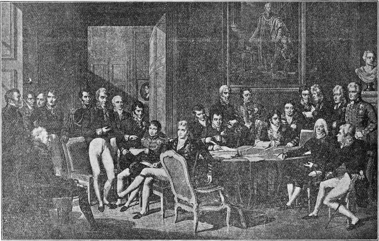 Het Keizerrijk telde nu 130 Departementen met 42 millioen inwoners. Alle koningen en vorsten op het vasteland waren, vrijwillig of gedwongen, Napoleons bondgenooten en allen, zijne bloedverwanten als de overigen, behandelde hij uit de hoogte.
