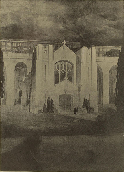 The buildings throughout will be fireproof constructed, in the main of reinforced concrete, and faced on the exterior with tapestry brick. Spanish tile will be used for the roof of the center building. Such trimmings as occur will be of Bedford limestone. The exterior is treated in the character of Lombard brick architecture, which style lends itself particularly well to the problem. All ostentation has been avoided and architectural effect has been sought in the general grouping and proportions rather than in the ornamentation; nevertheless, the psychology of attractive buildings has not been overlooked.