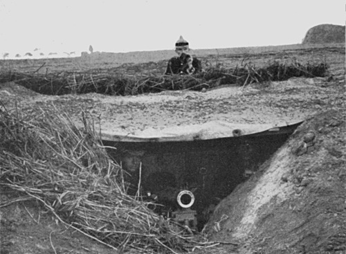 A recent innovation is the supplying of the infantry—for that matter of the cavalry also—with so-called machine guns. They are the Gatling guns of our own country, and every German infantry regiment now—since the army reform of 1913—has a machine-gun company. It consists of ninety men and forty horses, with six guns and three ammunition wagons. As the newest guns can fire at the rate of six hundred shots a minute, and as there are more than two hundred infantry regiments, not to speak of the cavalry and artillery, which also have their companies of “Gatlings,” one can gain some impression of the deadliness of modern campaigning. Many of the quick-firing guns now are supplied with stands on pivots so that they can be pointed in the [Pg 38] air against balloons and aeroplanes. But their chief use will be in guarding bridges and narrow passes. Their bullets carry for two miles, but they can be silenced by heavy artillery far beyond this range, nor can they carry enough ammunition for long-continued use. Altogether, however, a comparison of their fire with the simple flames of the traditional hell makes the latter place seem a mere pleasure-resort.