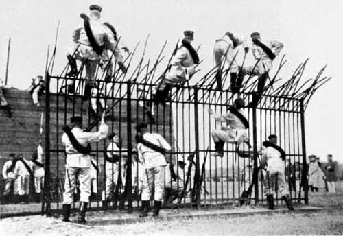 A glance at the methods of training the infantry will give some idea of the care and thoroughness with which the Germans have made their preparations for war. The old drill has not been entirely abandoned—indeed, some military critics think that there is still too much of the goose-step marching and of the parade tricks. But these have lost their old importance and the tendency of late years is toward the most realistic representation of the circumstances and problems of actual combat. The parade-ground has given place to the maneuvering field, acres and miles in extent. For the first time in Germany, this autumn, whole army corps were to have engaged in mock combat with one another.