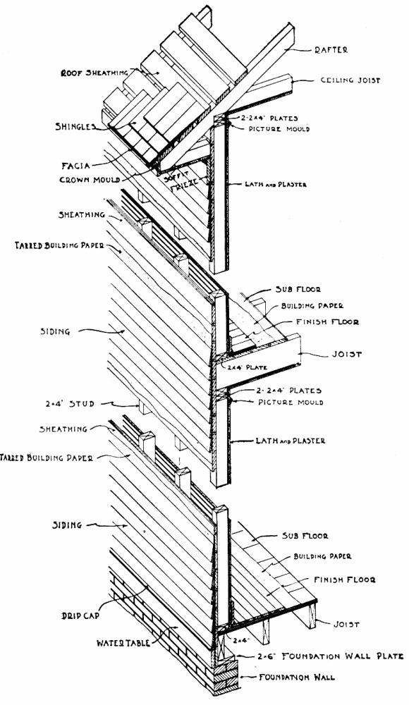 WALL PLATES: 2 in. × 4 in. No. 1 Hemlock, double at top, single at bottom of studding. Cut to fit.