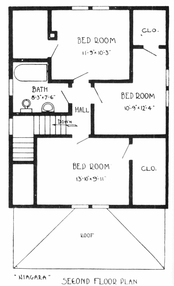 Roof Covering—Bennett 3-ply prepared roofing, or extra *A* Red Cedar Shingles, if preferred.