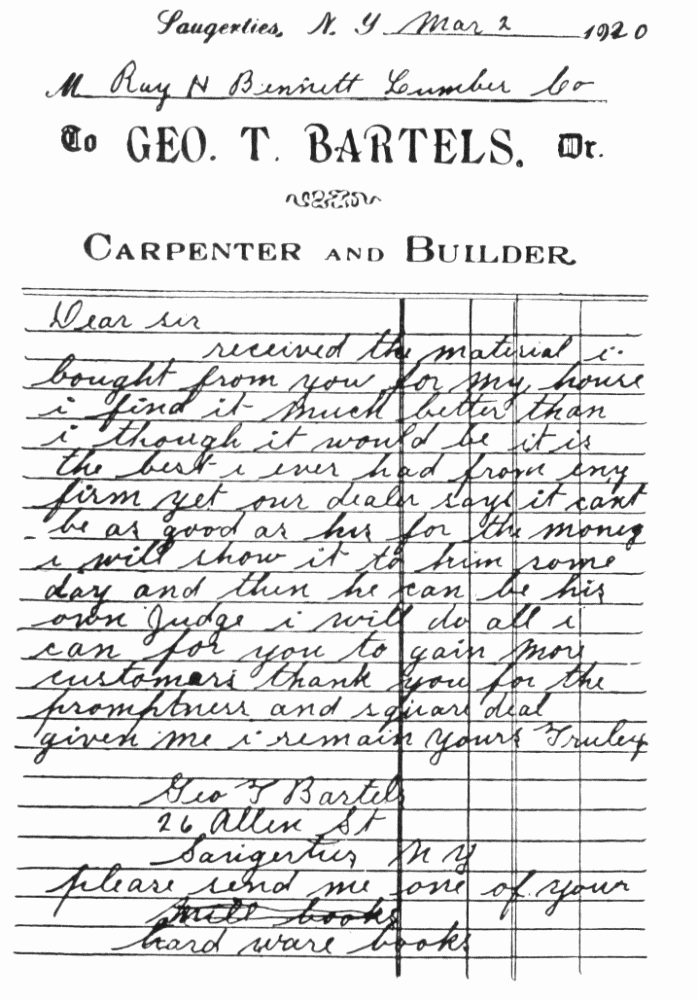 We guarantee to furnish all lumber, shingles, finishing lumber, doors, windows, frames, floor and interior trim, hardware, nails, paints of sufficient quantity and equal to or better than the grades specified, to complete the house according to the plans and specifications on opposite page. We further guarantee that there will be no extras, and that all material will reach you in perfect condition. Should any shortages occur, we agree to replace the material either by shipping the necessary material or paying you whatever it costs to buy locally.