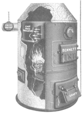 Requires little attention. Burns any kind of fuel. Hard or soft coal, coke or wood.