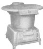 Combination laundry stove and heater. Heats laundry room and supplies hot water for domestic use. Has flat oval top plate, 16 in. wide, and 25-1/2 in. long. Will accommodate a wash boiler or six flatirons. Has durable grate with draw center. Water jacket surrounds entire firepot. Has capacity for heating 60 gallons of water. See Home Equipment Book for price.