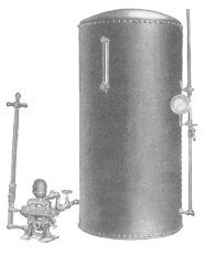 Galvanized range boiler for storing hot water under pressure. Connected to water front in the kitchen stove or to a coil in the furnace, or heated by water heater. Insures a constant supply of warm water for domestic use. Furnished in 30, 40 or 52 gallon sizes. See Home Equipment Book.