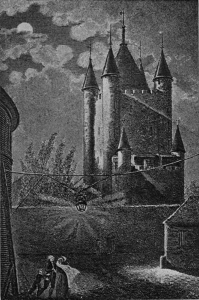 "The Conciergerie, the most ancient and the most formidable of all our prisons, which forms a part of the buildings of the Palais de Justice, one time palace of the kings, has preserved to this day the hideous character of the feudal ages. Its towers, its courtyard, and the dim passage by which the prisoners are admitted, have tears in their very aspect. Pity on the wight who, condemned to sojourn there, has not the wherewithal to pay for the hire of a bed! For him a lodging on the straw in some dark and mouldy chamber, cheek by jowl with wretches penniless like himself."[1]