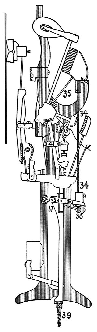 Among these primacy must be given to the screw-stringing device of Mason & Hamlin. This invention was intended to substitute a positive mechanical fastening for the tuning-pin, in place of the wooden wrest-plank. It consisted of a screw, threaded vertically in a socket, which was cut in a projecting shoulder on the iron-plate. As it extended below its socket, it was provided with an universal joint which ended in a hook. On this hook the string was wound, and was then free to pass on to the agraffe. A small T-hammer sufficed to turn the screw and the string was tightened or slackened as the screw turned in the threaded socket. The action was slow but sure, and the strings had the curious property of sharping under a test blow instead of the opposite, as is usual. The method of tuning was the same except that the screw turned in the opposite direction to the ordinary style and required much more turning to bring the string to the desired point. On the other hand, however, setting the pin was unnecessary, and the evils engendered by bad wrest-planks and sticking or twisting pins were unknown. Moreover, the turning of the screw involved very slight effort.