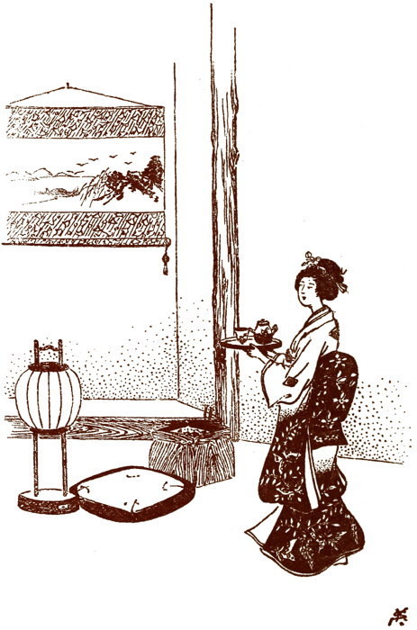 “Hark, listen!” said Sado-ko, her eyes gleaming. “They are calling me. They wish to put my wedding gown upon me. I must go. Natsu! Come and dress me for the last time in my maidenhood. Junzo! For but an hour’s space, sayonara!”