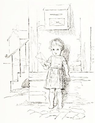 Dear Louise and Maggie,—It will soon be Roy's birthday. If you don't come home quick, you won't be here before it comes. Roy creeps. He can walk with our taking hold of him. He can stand up by the bath-tub. May S. don't know some of the words of her music-lesson. I say my lessons every day at home, and then I say them in school. I did not get a bad mark to-day; sometimes I do. I get apples in B.'s yard—they don't care—and take them to school over recess, and then I take them home. Mamma has to sew so hard, and we bother her, and she sends us out-doors. When it rains she don't; then we stay in the house, and play with our toys. Sarah's back, and we're glad, and she irons every Tuesday. We take walks with her sometimes. Mary's here too, and sometimes she goes out with her husband. I like him, and he gives me pennies. I would like to be over there and see your big dog Frank. Some Sunday afternoons papa's tired, and he don't want to go riding. We did go last Sunday. Last Sunday we took Roy. Marian plays with Roy every day, and mamma says Stop! when she hurts him. Clifford has to get his teeth fixed, and we can't go to P. until next Monday. Every day papa goes out to see the men fixing the trestle-work. On Roy's birthday we're going to have a little party; no one is coming, only us. Mamma has to send out when she wants papa—away out to the trestle-work. Mamma writes this letter, and I find the words. Marian has got lots of things in the corner by the bookcase again. Clifford's got lots of cars now, and he plays with them 'most every day. He's got a new tin train of cars from the Fair. We're getting our stoves fixed. There's fire in the sitting-room. Your tassels with the board on is up in the front parlor. We've got a Jumbo from the Fair. We take Jumbo out to see our 'ductors. Mine is away, and ain't home yet. Roy goes around picking up everything, and gets things out of mamma's basket, and dumped it over twice. It's near winter, and we've got the sleds down.
