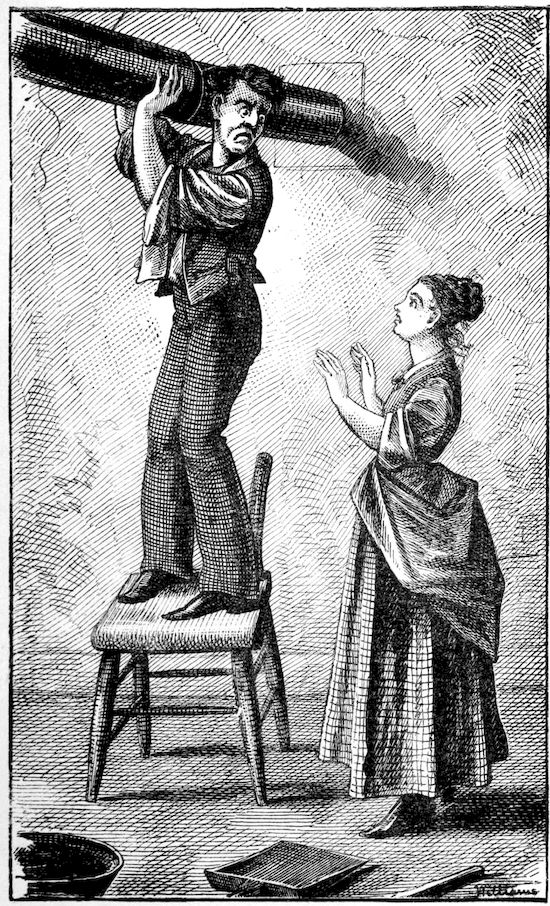 Says he, “It is a couple that don’t want to be gossiped about; that think marriage is sunthin’ too sacred and holy to be turned into a circus, with tinsel and folderols, and a big crowd of strangers a gazin’ on—the woman dressed up for principal performer, and the man for a clown. A couple that wants jest them they love best—”