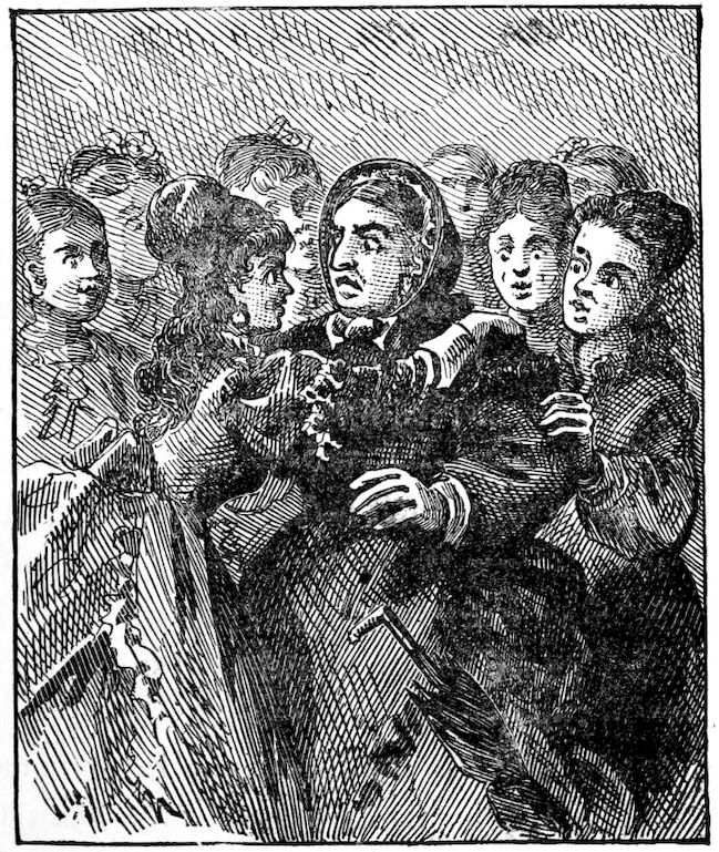 575But I hadn’t time to weep long in my pure blissfulness of spirit, for Judge Snow proposed we should all walk over and see the house, and he took right holt of my arm and locked arms with me (he meant well, Josiah was right there) and we led the way, and Thomas Jefferson and Maggy a follerin’ as happy as any two turtle doves I ever see, and then Whitfield and Tirzah Ann, and then Josiah and—well, who do you s’pose he was a waitin’ on. What female do you s’pose he was a carryin’ in his arms, and wouldn’t let no one else touch it if he could help it, and kissin’ her right before his lawful pardner too, and she enjoyin’ of it? Who was it? I can’t keep in a minute longer; it was the baby—Tirzah Ann’s little infant babe. I have kep’ still about it; I have held the baby back to surprise the reader and happyfy ’em. And so the hull procession of us walked over the grass, green as green velvet, under the pleasant shade trees, under the little vine covered gate, and so through the other yard jest as green and shady and pleasant, up into the house which was to be my boy’s home.