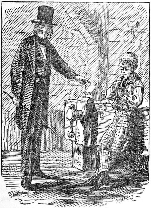 “Don’t you remember the boy that was most a fool, and when he sot out for his first party, his father charged him not to say a word, or they would find him out. He sot perfectly speechless for more’n an hour; wouldn’t answer back a word they said to him, till they begun to call him a fool right to his face. And then he opened his mouth for the first time, and hollered to his father,—‘Father! father! they’ve found me out.’”