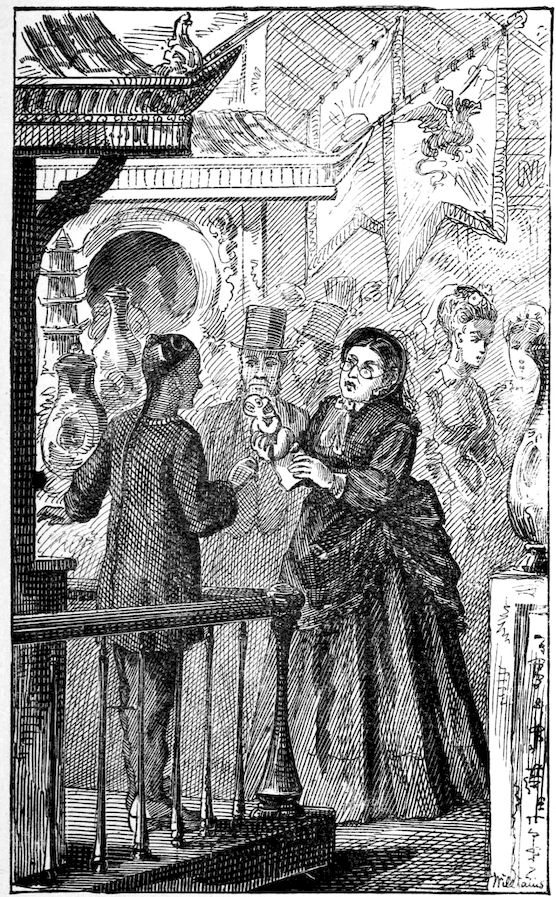 570He was a standin’ out in the front portico as I said this, and says he: “Yes there is, Samantha; this house that stands right here by it, is jest as pretty;” and it was. There it stood, so peaceful and pretty, right by the side of this one, with green shady yards in front, and a handsome little lattice work gate all runnin’ over with green vines and poseys openin’ between the two. Oh! how perfectly beautiful they did look, and I knew this thought goared Josiah and me at the same time,—what if Thomas J. could be the doctor here in Jonesville and live right here by Tirzah Ann. Oh, what bliss it would be! Then I turned and went to unpackin’ my vittles, and settin’ the table. It looked splendid; and after I got it all done I sent Josiah for the childern and—well, I sent him for all on ’em.