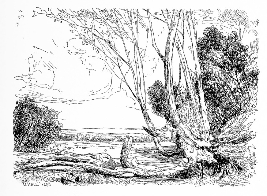 MR. OLIVER HALL, a young and, until lately, a comparatively little-known but a distinctly interesting and strongly gifted etcher (who paints, he tells me, a good deal in water-colour), has next to be spoken of; and if his work has one characteristic more than another—though grace and freedom are its characteristics too—the one that is most its own is the continual evidence his plates afford of his enjoyment of growth and building up—his pleasure in the traces of the way by which the object before him became the object that it is. Mr. Hal object is more likely to be a tree than a church. Architecture he does not attack, and his rare figures are but the figures of the landscape-painter. He labours amongst sylvan and amongst pastoral scenes that are not strikingly picturesque; and in method, as well as often in theme, he suggests Seymour Haden.