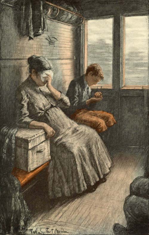 We came to the outskirts of the city; the mill crowds had been left, and at last a lonely crossing came, the one for which I had been looking. I had the window open. The train was gathering speed, but I saw the black-garbed blind woman, supported by her daughter, standing near the gates, her eyes fixed ahead, and her handkerchief fluttering, fluttering, as we plunged into the country.