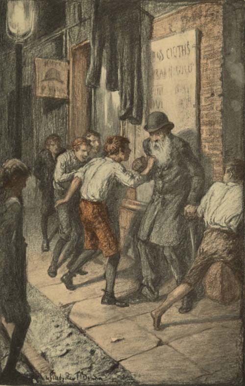 We boys made exciting work of this, encouraged by our elders. I recall one little man and his wife, who did not believe in unions or strikes. They did have a greed for money, and they had plenty of it invested in tenements. They had no children to support. They were,[263] however, among the first to try to break the strike in our mill. Popular antipathy broke with direful menace upon their heads. Every night a horde of neighbors—men, women, boys, and girls—escorted them home from their work, and followed them back to the mill gates every morning. The women among us were the most violent. “Big Emily,” a brawny woman, once brought her fist down on the little man’s head with this malediction: “Curse ye! ye robber o’ hones’ men’s food! Curse ye! and may ye come to want, thief!” The poor man had to take the insult, for the flicker of an eye meant a mobbing. His wife was tripped by boys and mud was plastered on her face. The pettiest and the meanest annoyances were devised and ruthlessly carried into effect, while the strike-breaking couple marched with the set of their faces toward home.