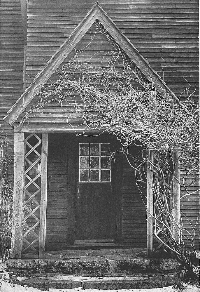Even to-day, one finds in old New England villages front doors which are never opened; the bolt is rusted into its socket, or the key is ‘frozen’ and refuses to turn. In many instances these front doors have never had steps built up to them, but remain inaccessible, save by climbing, at three or four feet above the ground.