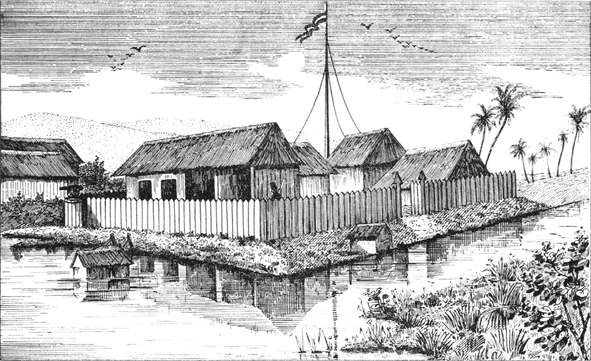 Fort Buntok — Orang-Utang — Operationen — Prostitué bei den Affen — Darwinisten — Indische Häuser — Möbelfabrikanten — Französische Mode — Gefährliche Obstbäume — Einrichtung der Häuser — Dajakische Häuser — Götzenbilder — Tuwak oder Palmwein — Wittwenstand der Dajaker — Opfern der Sclaven — Todtenfest