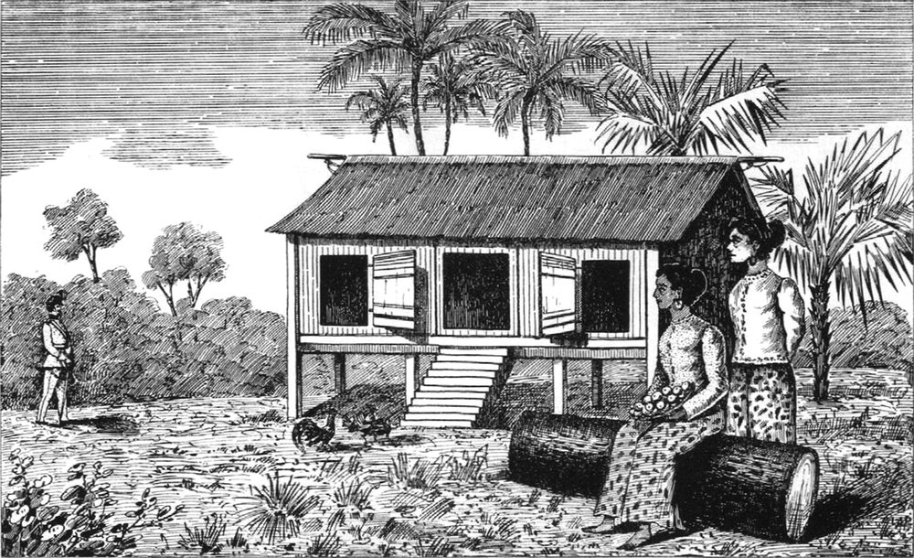 Ameisen und Termiten in den Wohnungen — Verderben der Speisevorräthe — Milch-Ernährung der Säuglinge — Aborte Tjebok — Transpiration in den Tropen — Baden — Siram = Schiffsbad — Antimilitärischer Geist der Holländer — Das Ausmorden der Bemannung des Kriegsschiffes „Onrust“, von den Dajakern erzählt