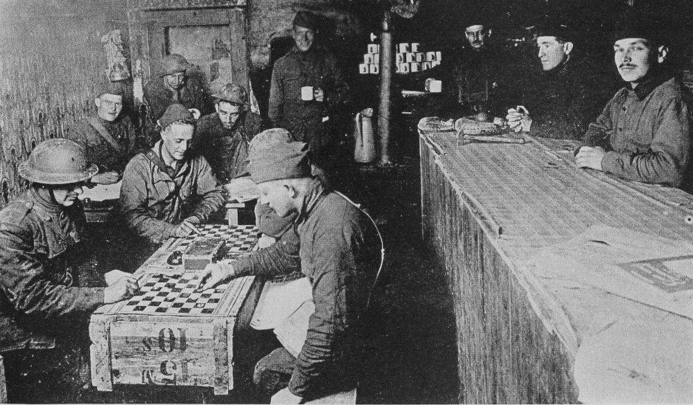 The American Army was a reading and thinking army and that one of the seven great big-brothering organizations which undertook to supply it with reading matter, the American Library Association, was kept busy. The Library War Service of the Association had in each of forty-eight large army and[Pg 298] navy training camps and in seventy hospitals in the United States a central library building, or library quarters, with branches and stations radiating all over the camp or hospital area to render its volumes easy of access. It had collections of books in nearly two hundred hospitals and Red Cross Houses. It equipped with these collections over five hundred military camps and posts and aviation fields, schools and repair depots. It supplied with libraries 260 naval and marine stations and 750 vessels. It had nearly 2,000 branches and stations placed in Y. M. C. A. and K. of C. huts, barracks and mess halls. It shipped overseas 2,000,000 books and 64,000 magazines and distributed 5,000,000 magazines donated by the public through the mails. In its war service libraries there were over 5,000,000 volumes. Three hundred and forty trained librarians supervised its service. Accepted books to the number of 4,000,000 were given by the American people, who provided also the money with which were bought 1,300,000 more. Book donations were well sifted before the books were accepted for war service and the authorities of the association estimated that probably twice as many were given as were finally used.