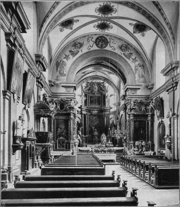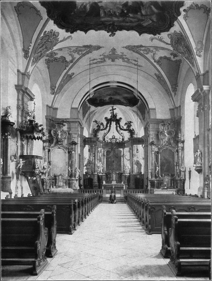 GRAFENRHEINFELD. PFARRKIRCHE. ERBAUT AB 1755 WOHL NACH PLÄNEN VON J. M. FISCHER-WÜRZBURG. INNENANSICHT