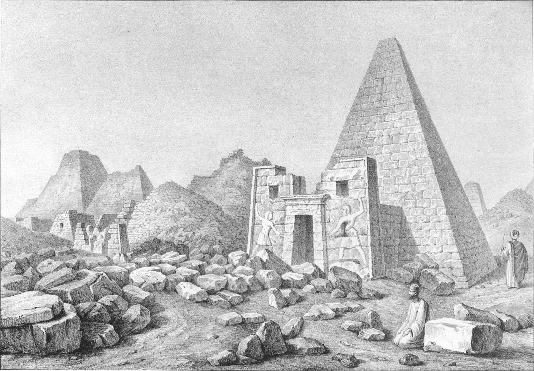 The monuments of Egypt, the most wonderful ever reared by human hands, have been described by numerous travellers, though there is still ample room for more full and accurate delineation. Even the antiquities of Lower Nubia have of late been repeatedly visited. But Ethiopia, above the second cataract, including the metropolis of the ancient kingdom of Meroe, had been explored by very few Europeans, and only two Englishmen; yet it abounds with monuments rivalling those of Egypt in grandeur and beauty, and possessing, in some respects, a superior interest. According to Heeren, Champollion, Rosellini, and other eminent inquirers, whose judgment was confirmed by my own observations, this was the land whence the arts and learning of Egypt, and ultimately of Greece and Rome, derived their origin. In this remarkable country we behold the earliest efforts of human science and ingenuity.