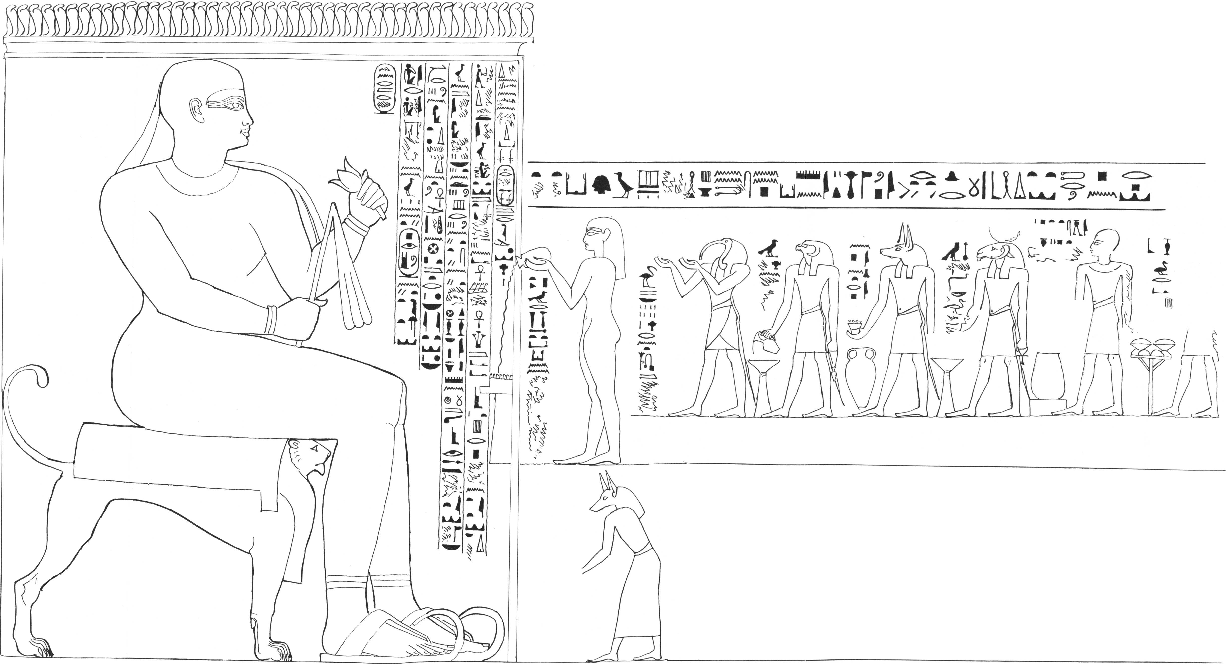 [85]I regret that in some few of the impressions the caps were printed black. The reader must be aware, that the management of such engravings as these is excessively difficult. Four colours are impressed from separate stones—red, blue, black, and the ground. The others were put in by hand. I took great pains in superintending the mixing of the colours, to give the reader as exact a representation of an Egyptian painting as was in my power. I am indebted to Mr. Bonomi for having drawn for me on the stones these and the other plates of sculpture.