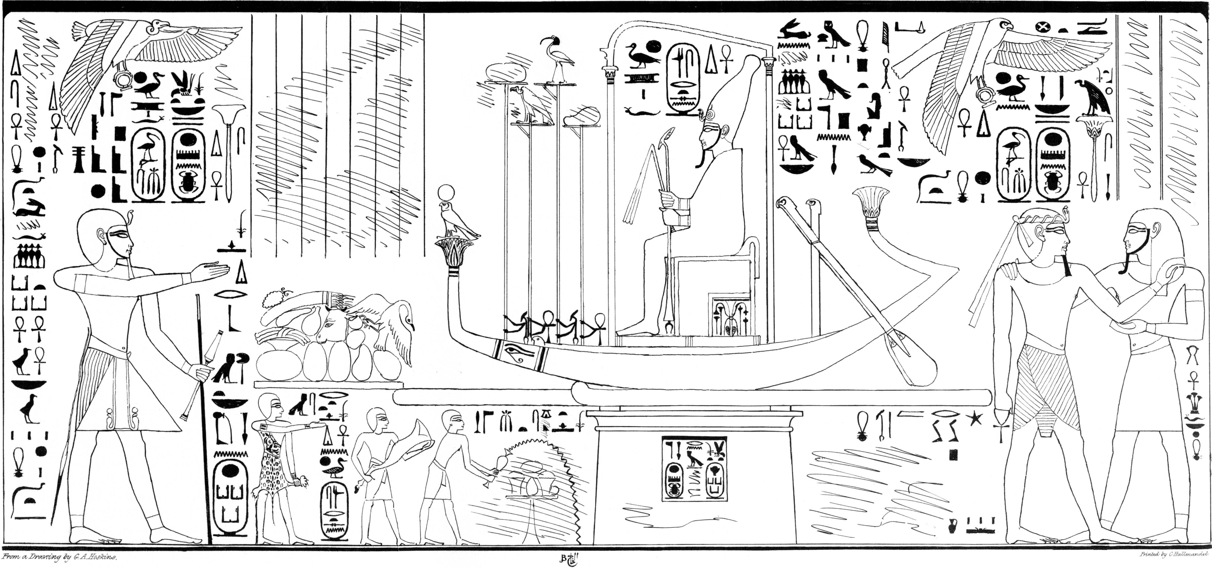 [86]The past and present condition of Ethiopia are so admirably described in the first two verses, chap. xviii. of Isaiah, and the prophecy so admirably fulfilled, that I cannot refrain from repeating them:—“Woe to the land shadowing with wings, which is beyond the rivers of Ethiopia: that sendeth ambassadors by the sea, even in vessels of bulrushes upon the waters, saying, Go, ye swift messengers, to a nation scattered and peeled, to a people terrible from their beginning hitherto; a nation meted out and trodden down, whose land the rivers have spoiled!” Can the expression “shadowing with wings” allude to the winged globe on all the edifices in Egypt and Ethiopia? Vessels of bulrushes are highly characteristic of a wild tribe in the interior, almost similar ones being used at the present day; but the “nation, terrible from the beginning, meted out and trodden down, whose land the rivers have spoiled,” can only be Ethiopia.