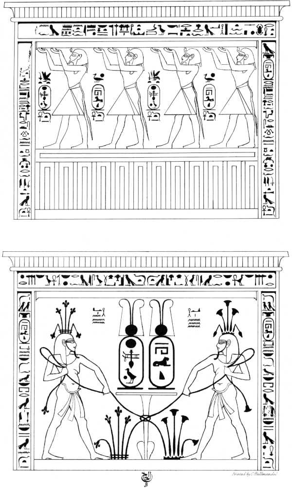 [63]Major Felix’s account of the Egyptian dynasties was the first that showed us the great utility of the lapidary inscriptions. Although brief, it is so admirably arranged, the information it contains so valuable, and, notwithstanding the recent progress in the study of hieroglyphics, generally so correct, that it is very much to be regretted that the papers he lithographed at Cairo have not been more widely circulated by a reprint in England.