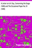 Letter to A.H. Esq.; Concerning the Stage (1698) and The Occasional Paper No. IX (1698)