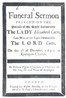 A Funeral Sermon Preach'd on the Decease of the Right Honourable the Lady Elizabeth Cutts