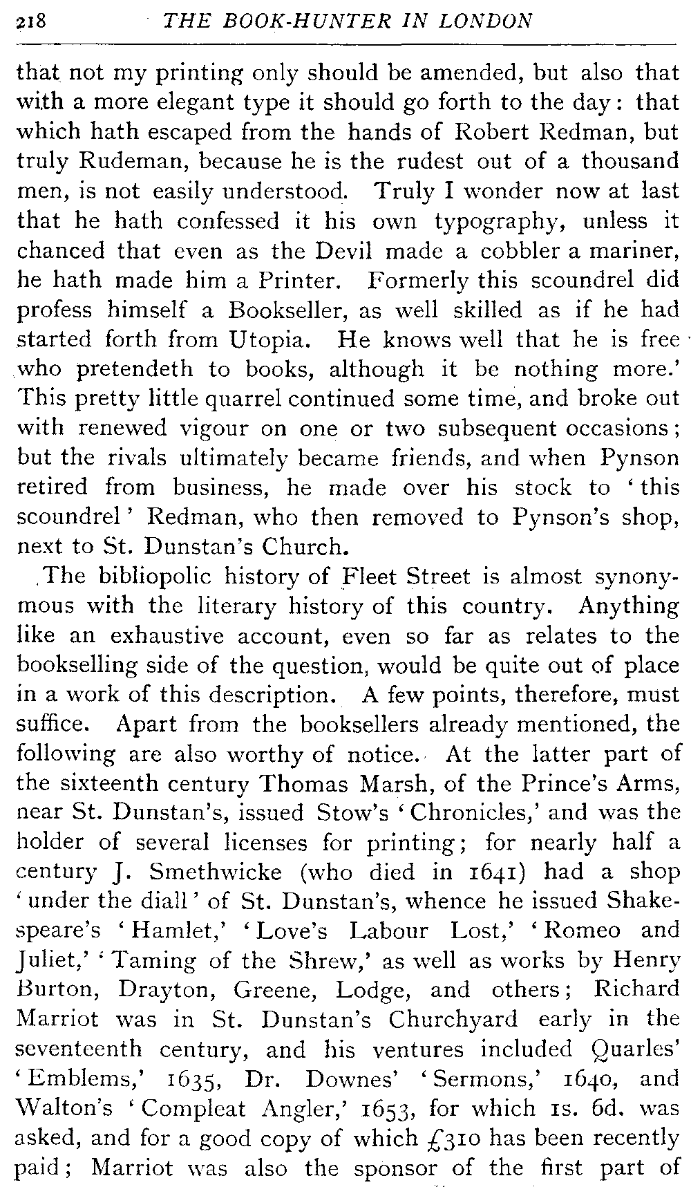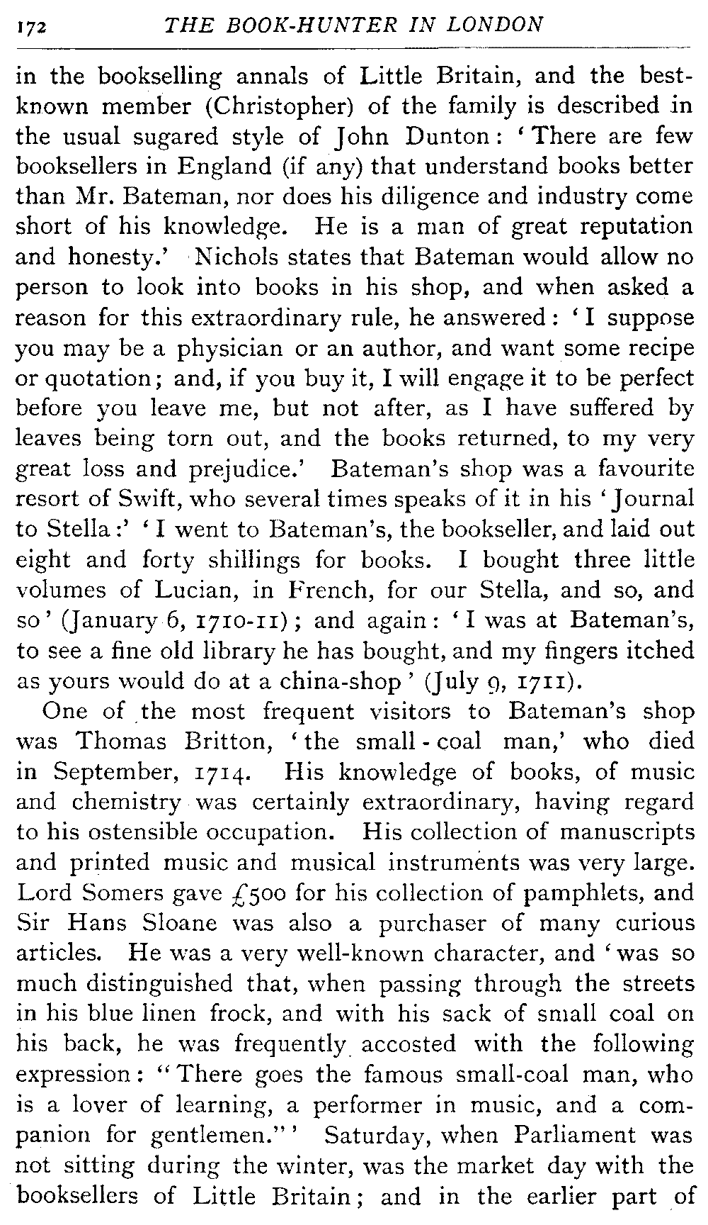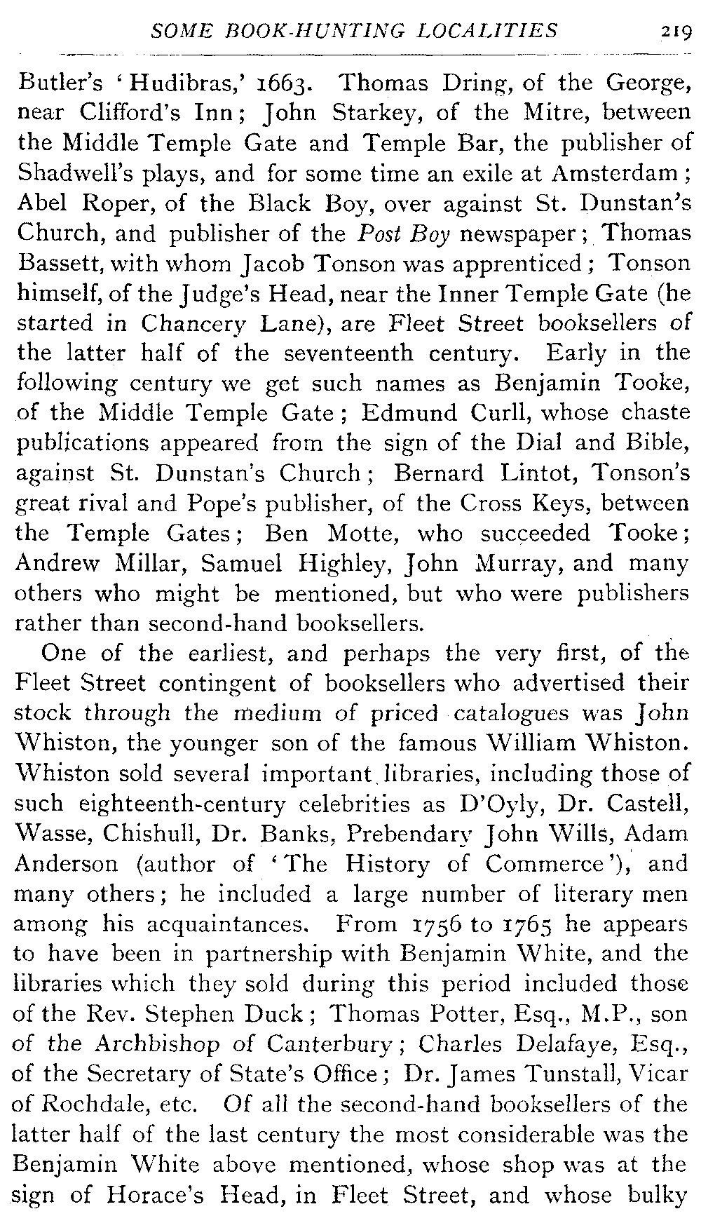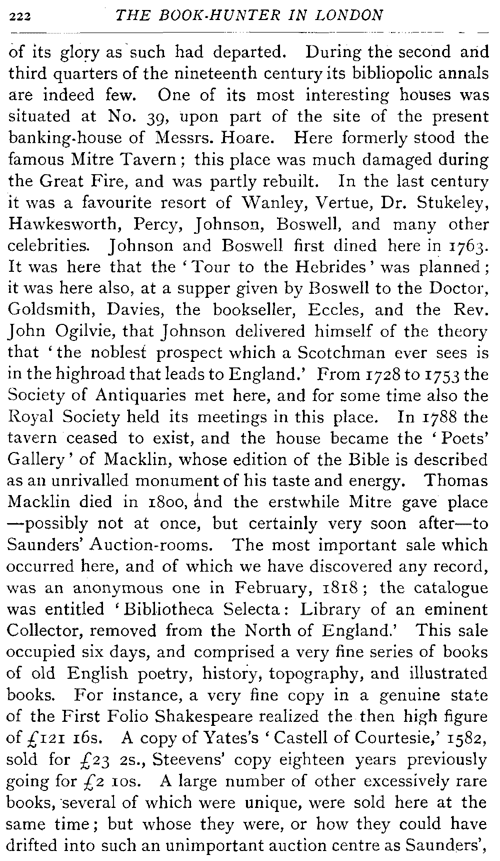 'The Book-hunter in London' is the outcome not only of material which has been accumulating for many years past, from published and unpublished sources, but also of a long and pleasant intercourse with the leading book-collectors and booksellers in London, not to mention a vigorous and constant prosecution of one of the most pleasant and instructive of hobbies. The author has freely availed himself of the information in the works of Dibdin, Nichols, and other writers on the subject, but their statements have been verified whenever possible, and acknowledgements have been made in the proper places to the authorities laid under contribution.