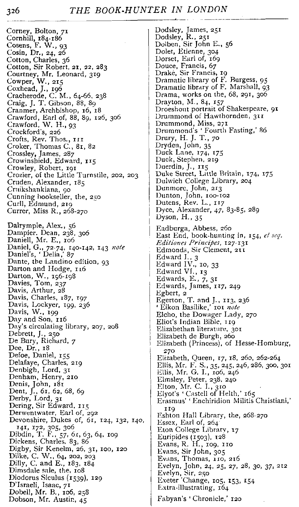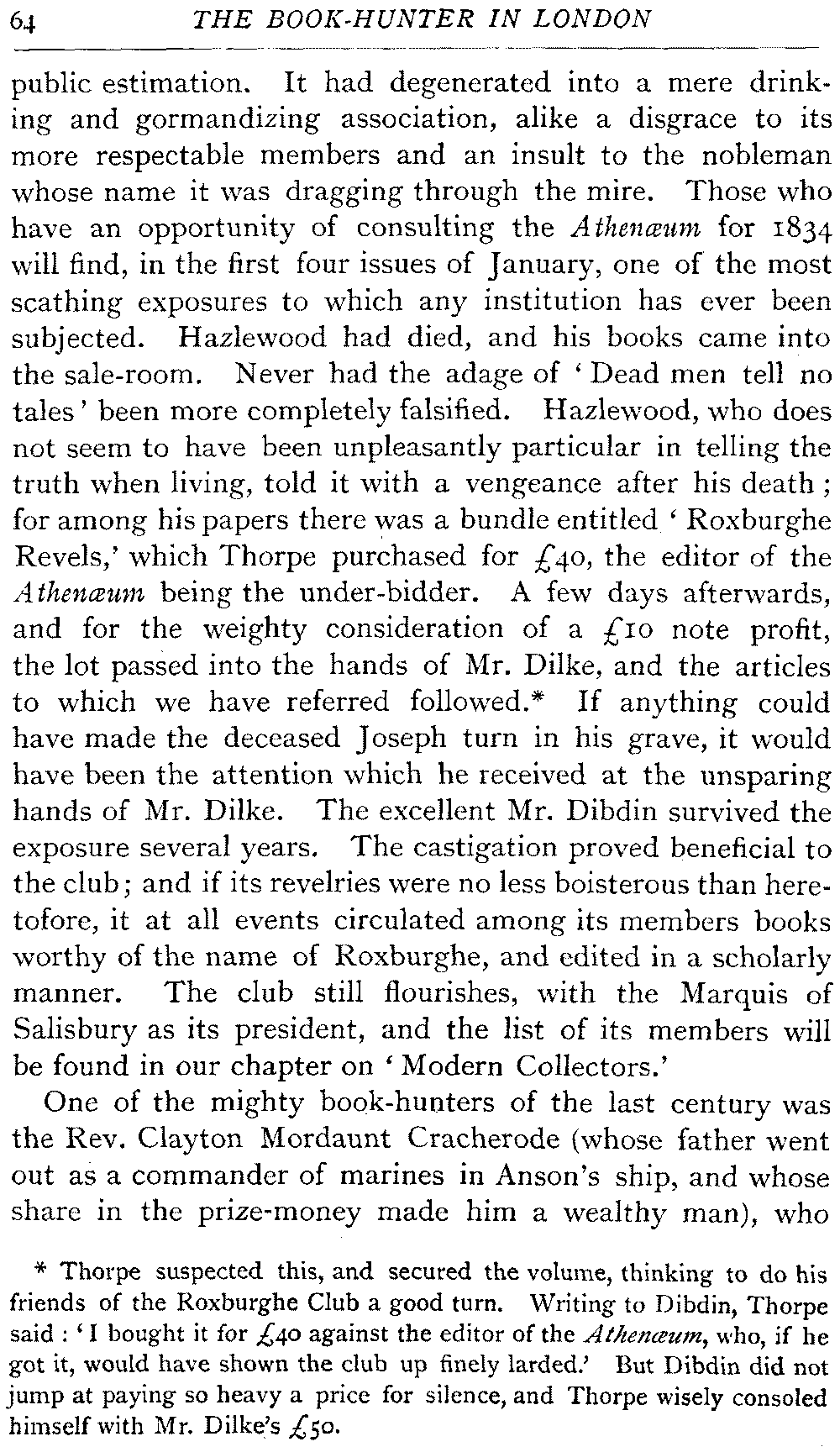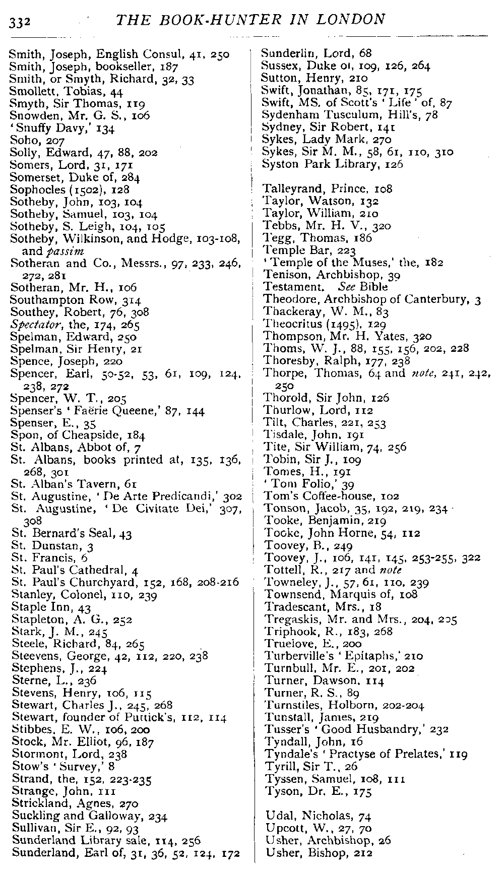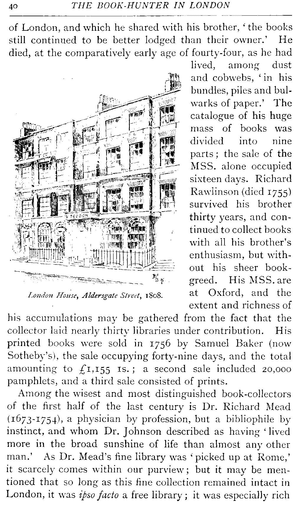 'The Book-hunter in London' is the outcome not only of material which has been accumulating for many years past, from published and unpublished sources, but also of a long and pleasant intercourse with the leading book-collectors and booksellers in London, not to mention a vigorous and constant prosecution of one of the most pleasant and instructive of hobbies. The author has freely availed himself of the information in the works of Dibdin, Nichols, and other writers on the subject, but their statements have been verified whenever possible, and acknowledgements have been made in the proper places to the authorities laid under contribution.