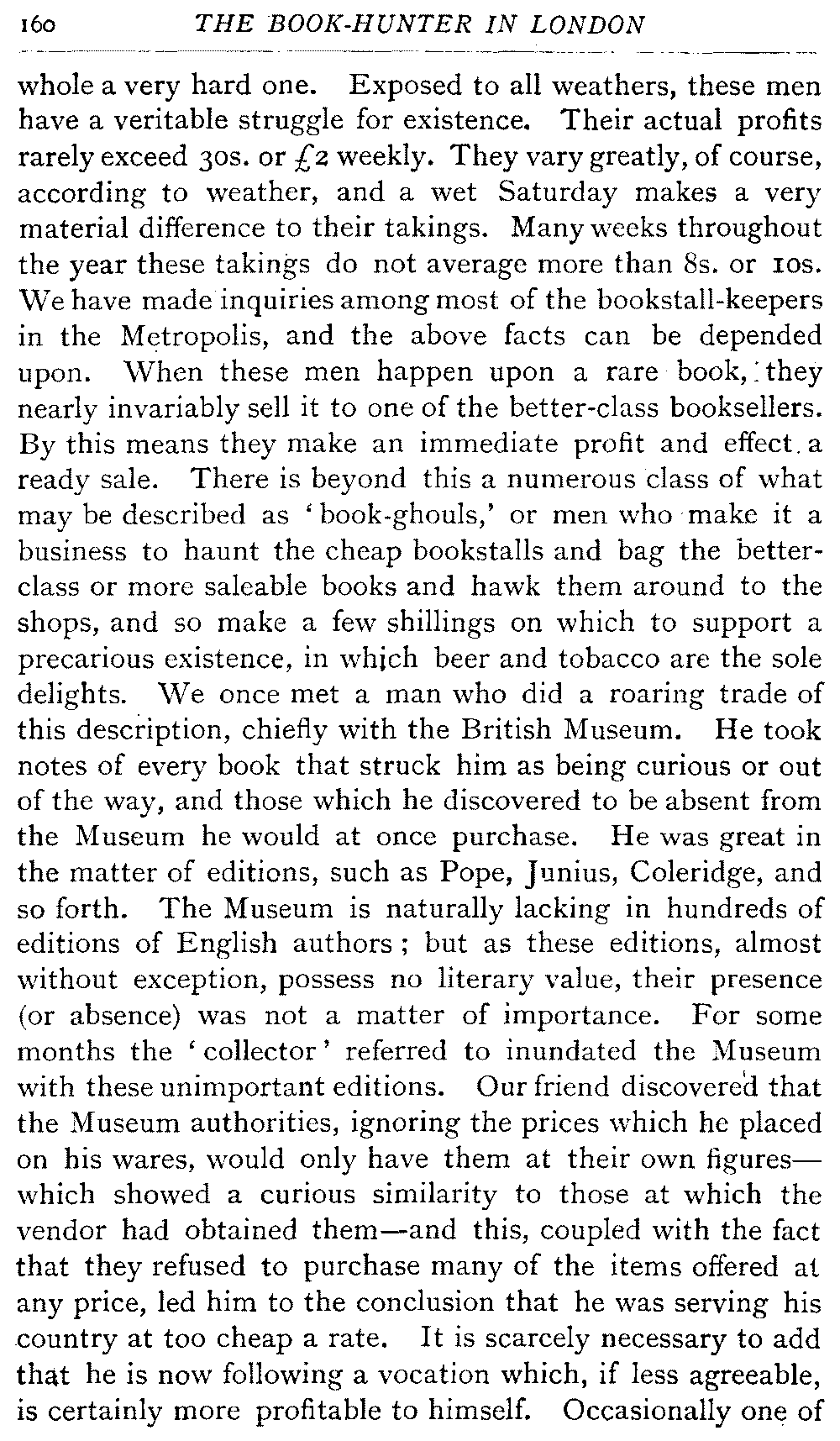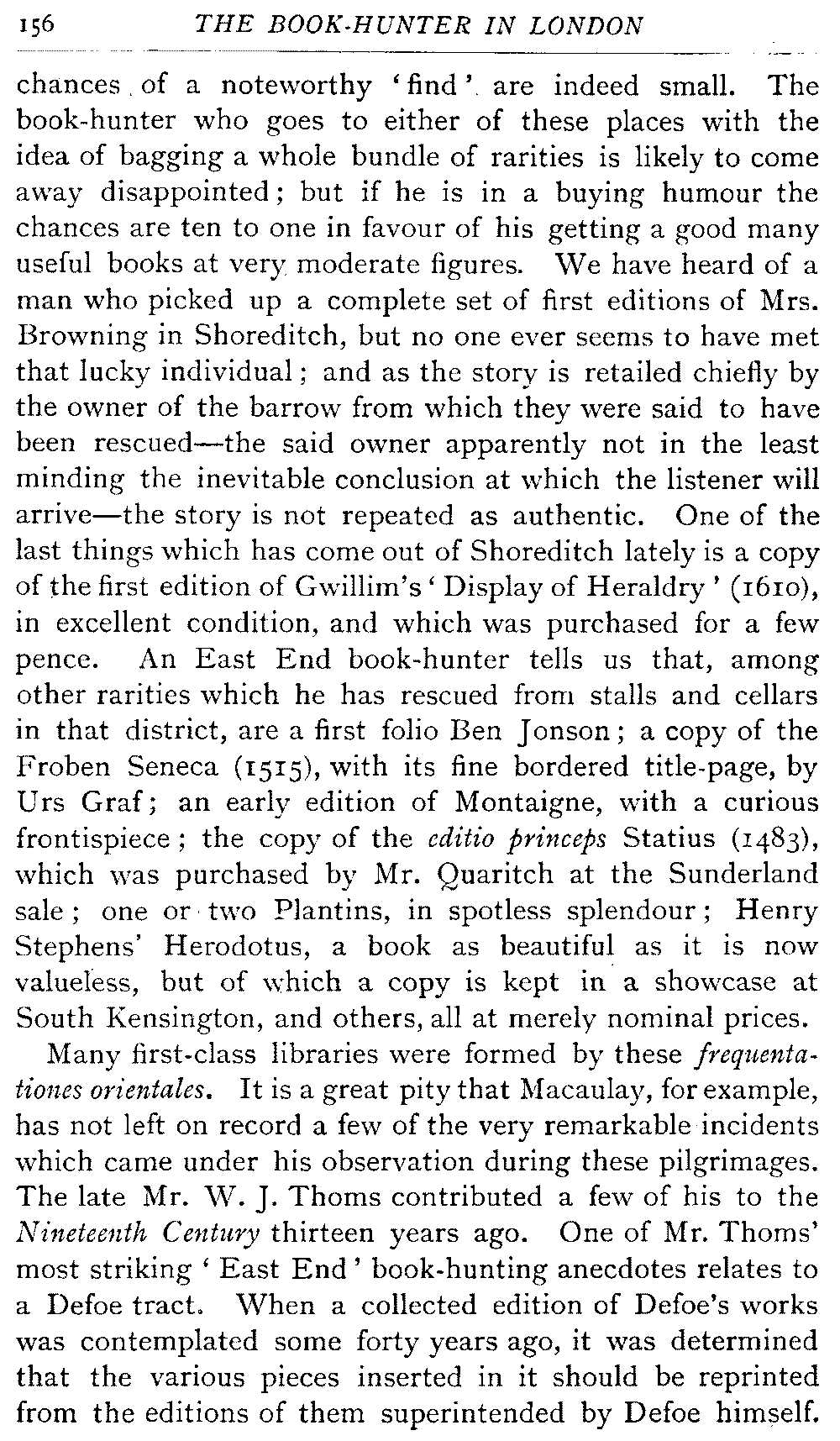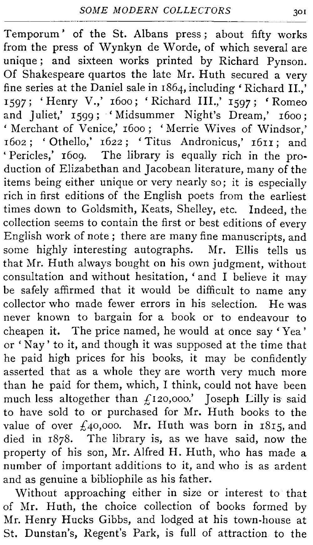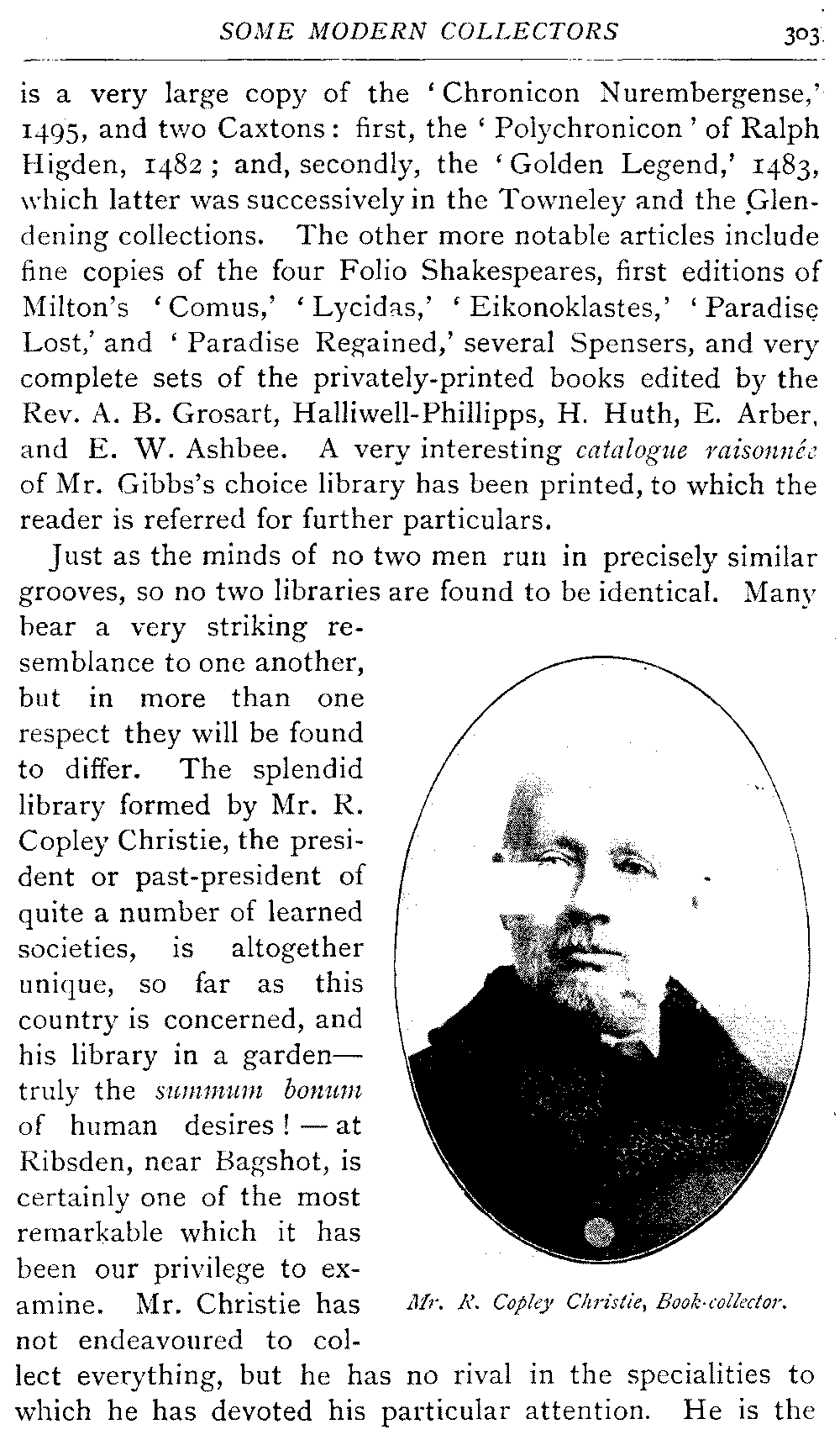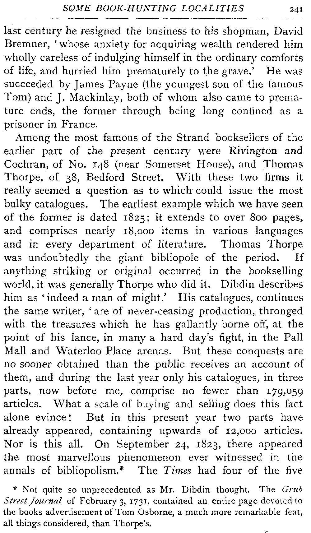 The contempt with which Dr. G. received the bookseller's proposal is peculiarly typical of the book-collector. If he cannot obtain what he wants just exactly when he wants it, he does not care about it. The book-collector is doubtless too prone to despise everything which is not quite in his line, forgetting that all branches of literature contribute in some degree, greater or lesser, to the bulk of human knowledge. No man can be universal, even if he had the wealth of a dozen Rothschilds, or the mental vigour and versatility of a hundred Gladstones.