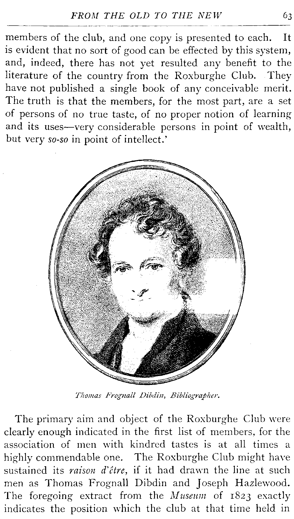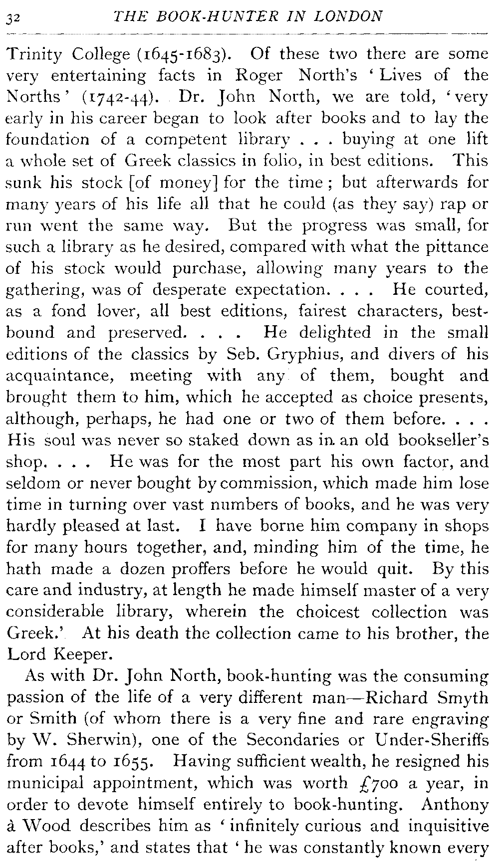 It is infinitely easier to name those who have collected books in this vast and unwieldy London of ours, than it is to classify them. To adopt botanical phraseology, the genus is defined in a word or two, but the species, the varieties, the hybrids, and the seedlings, how varied and impossible their classification! Most men have bought books, some have read a few, and others many; but beyond this rough grouping together we shall not attempt anything. One thing, however, the majority of book-collectors agree in, and that is in regarding their own generation as a revolution—they have, as Butler has described it in his picture of an antiquary, 'a great value for that which is past and gone, like the madman that fell in love with Cleopatra.'