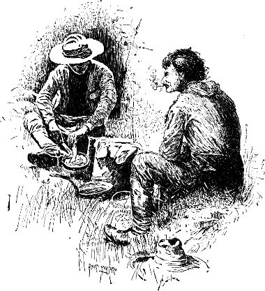 Bisweilen streckten wir uns an müßigen Nachmittagen auf den Sand hin und lasen bei einer Pfeife ein paar alte abgegriffene Erzählungen. Abends am Lagerfeuer spielten wir zur Herzstärkung ›Euchre‹ und ›Seven Up‹, und zwar mit so fettigen und schäbigen Karten, daß nur eine den ganzen Sommer fortgesetzte Bekanntschaft mit ihnen es ermöglichte, bei gehöriger Aufmerksamkeit das Kreuz-Aß vom Schellen-Buben zu unterscheiden.