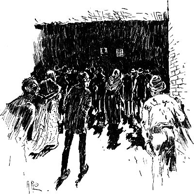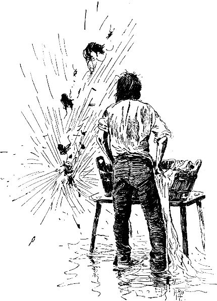 Einen gräßlicheren Alarmruf hätte es nicht geben können. Niemand wagte mehr das Zimmer zu verlassen aus Furcht, auf eine Tarantel zu treten. Jeder tappte nach einem Koffer oder[15] einem Bett und schwang sich hinauf. Dann folgte die eigentümlichste Stille – eine Stille gräßlicher Spannung, voll Erwartung, Hoffnung, Furcht. Es war pechfinster, und um das Schauspiel der vierzehn zu genießen, wie sie in höchst mangelhafter Toilette ängstlich auf Koffern und Betten hockten, mußte man sich schon mit der Einbildungskraft behelfen, denn zu sehen war schlechterdings nichts. Dann folgten gelegentlich kleine Unterbrechungen der Stille; man konnte an der Stimme erkennen, wer sprach und wo der Betreffende sich befand; auch vermochte man zu unterscheiden, aus welcher Richtung die sonstigen Geräusche kamen, die einer der armen Dulder durch sein Herumtappen oder eine Aenderung seiner Körperlage verursachte. Die ab und zu vernehmbaren Stimmen waren nicht sehr gesprächig – man hörte nur ein schwaches ›Au!‹ gefolgt von einem tüchtigen Aufstampfen; dann wußte man, daß der betreffende Herr einen haarigen Teppich oder sonst etwas dergleichen auf der Haut gespürt und daraufhin einen Satz aus dem Bette auf den Stubenboden gemacht hatte. Darnach wieder tiefe Stille. Jetzt rief eine nach Luft schnappende Stimme: