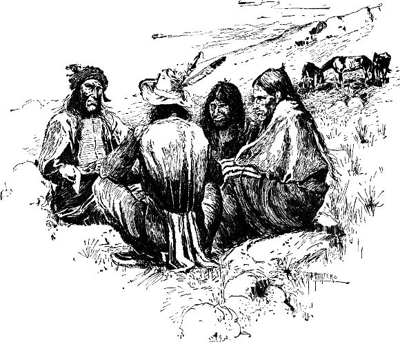 Ein unbekannter Mann (wie sich später zeigte, war es der Bruder des Auktionators) bemerkte meine sehnsüchtigen Blicke und meinte, es sei doch für den Preis ein ganz respektables Pferd; der Sattel, fügte er bei, sei allein das Geld wert. Es war ein spanischer Sattel mit gewichtigen ›Tapidaros‹ und mit dem plumpen Ueberzug von Sohlenleder unaussprechlichen Namens.[30] Ich sagte, ich hätte halb und halb Lust zu bieten. Darauf sah mich der Mensch mit seinen stechenden Augen an, als wollte er prüfen, wes Geistes Kind ich sei; doch ließ ich jeden Verdacht fallen, als er sprach, denn sein Wesen war voll argloser Aufrichtigkeit und Wahrhaftigkeit.