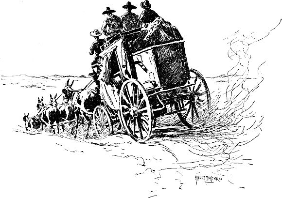 Darauf hin kamen die bestaubten Packesel zurück, die nun einen Bericht einreichten und ihre Arbeit einstellten. Der Gouverneur[14] nahm die Sache fortwährend höchst gemütlich; er meinte, da Frau Flannigan sich wegen des Unterhalts der Brigade doch in jedem Falle irgendwie an ihn halten werde, so wolle er sich mit den Jungens auch so viel Spaß machen, als möglich; er gedenke, setzte er mit freundlichem Augenzwinkern hinzu, sie mit ihren Vermessungen bis nach Utah hinein zu schicken und dann an Brigham zu telegraphieren, er solle sie wegen Grenzverletzung hängen lassen.