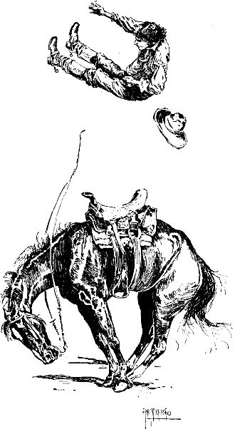 Ich vermochte kaum meinen Jubel zurückzuhalten, bezahlte[31] das Geld und stellte das Tier in den benachbarten Mietstall ein, damit es etwas zu fressen bekomme und sich ausruhe. Am Nachmittag nahm ich das Geschöpf mit auf die Plaza, wo ein paar Leute es an Kopf und Schwanz festhielten, während ich aufstieg. Sobald sie losließen, stellte der Gaul seine vier Füße dicht zusammen, senkte den Rücken und wölbte ihn dann wieder plötzlich, so daß er mich drei oder vier Fuß hoch in die Luft hinauf schnellte! Ich kam ganz senkrecht wieder herunter, mitten in den Sattel, flog aber augenblicklich wieder in die Höhe und wäre fast auf den hohen Sattelknopf gekommen, schoß dann ein drittesmal empor und kam jetzt auf den Hals des Gaules zu sitzen – alles im Verlauf von drei oder vier Sekunden. Nun bäumte er sich und stand fast kerzengerade auf den Hinterbeinen, während ich mich verzweifelt an seinen mageren Hals anklammerte und so in den Sattel zurückrutschte. Kaum stand er wieder auf allen Vieren, so hob er sofort die Hinterbeine und stellte sich auf die Vorderbeine, während er mit jenen ausschlug, als wollte er dem Himmel eins versetzen. Sodann begann er abermals[32] Flugübungen mit mir anzustellen. Als ich das drittemal emporschnellte, hörte ich, wie ein Fremder sagte: »O, aber der kann einmal bocken!«