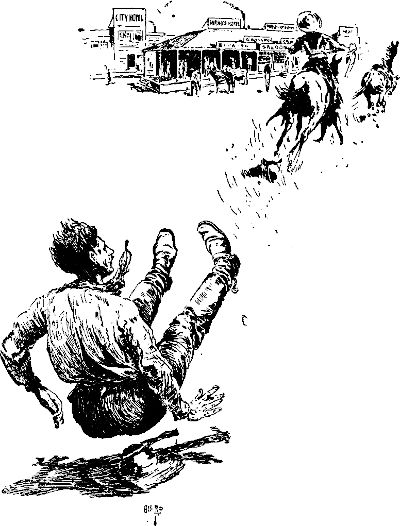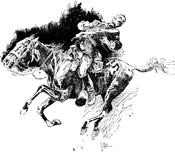 Ich schwebte noch in der Luft, als jemand dem Gaul einen schallenden Hieb mit einem Lederriemen gab, und als ich wieder herunterkam, war der echte mexikanische Stöpsel nicht mehr da. Ein junger Kalifornier jagte ihm nach, fing ihn ein und fragte, ob er einen Ritt mit ihm machen dürfe. Ich gestattete ihm diesen Hochgenuß. Er bestieg den Echten und flog ebenfalls einmal in die Höhe, rannte ihm aber, wie er herunterkam, die Sporen in die Rippen, worauf der Gaul davonging wie ein Telegramm. Er schwebte über drei Zäune wie ein Vogel und verschwand auf der Straße nach dem Washoe-Thal.