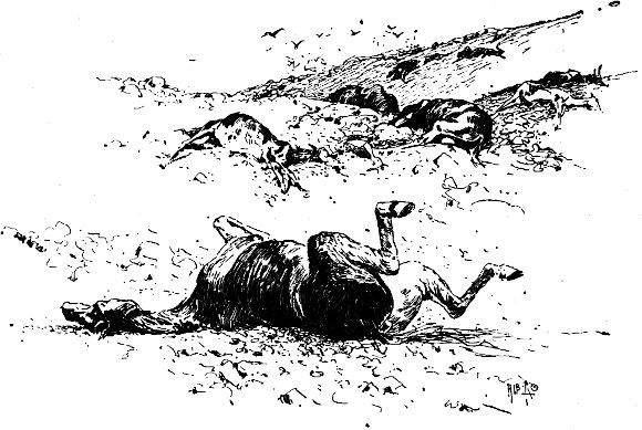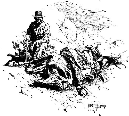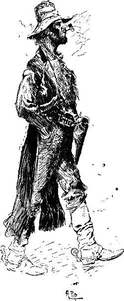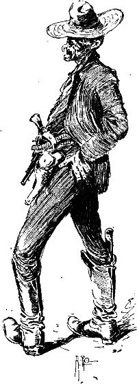 Darauf ritt er hin und machte dem Betreffenden Vorhalt mit einem sechsläufigen Revolver, wogegen sich dieser mit dem seinigen entschuldigte. Als die Pistolen leer waren, nahm der Unbekannte sein Geschäft (er flickte sich seine Peitschenschnur) wieder auf, während Herr Harris mit höflichem Bückling an uns vorbei nach Hause ritt. Er hatte eine Kugel durch den einen Lungenflügel und mehrere in die Hüften bekommen, und die kleinen Blutströme, die dem Pferd über die Flanken liefen, gaben dem Tier ein ganz malerisches Aussehen. Ich habe später, so oft[9] ich Harris nach jemand schießen sah, immer wieder an jenen ersten Tag in Carson denken müssen.