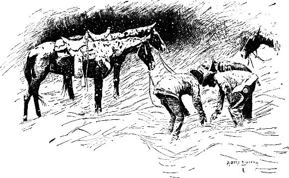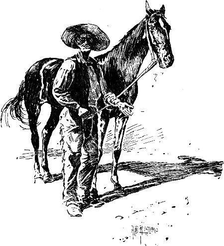 Ein unbekannter Mann (wie sich später zeigte, war es der Bruder des Auktionators) bemerkte meine sehnsüchtigen Blicke und meinte, es sei doch für den Preis ein ganz respektables Pferd; der Sattel, fügte er bei, sei allein das Geld wert. Es war ein spanischer Sattel mit gewichtigen ›Tapidaros‹ und mit dem plumpen Ueberzug von Sohlenleder unaussprechlichen Namens.[30] Ich sagte, ich hätte halb und halb Lust zu bieten. Darauf sah mich der Mensch mit seinen stechenden Augen an, als wollte er prüfen, wes Geistes Kind ich sei; doch ließ ich jeden Verdacht fallen, als er sprach, denn sein Wesen war voll argloser Aufrichtigkeit und Wahrhaftigkeit.